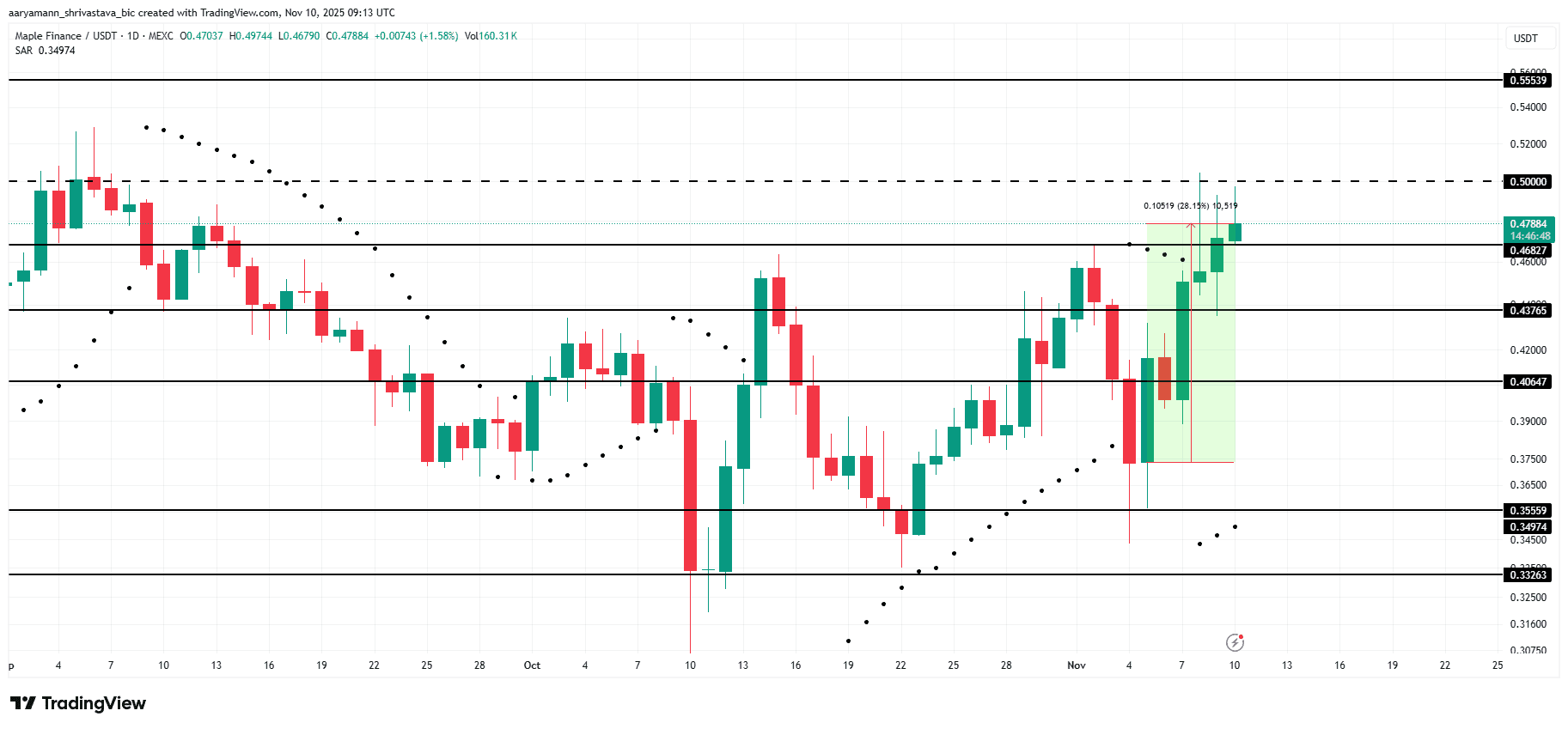 در طول این رویداد، بنیانگذاران Maple درباره آخرین دستاوردهای پلتفرم مذکور بحث خواهند کرد، محصولات جدید سهماهه چهارم را رونمایی میکند و برنامههای سال ۲۰۲۶ را ترسیم خواهد کرد. این بهروزرسانیها میتوانند به عنوان یک کاتالیزور برای SYRUP عمل کنند و به طور بالقوه قیمت آن را به بالای ۰.۵۰۰ دلار و به سمت مقاومت بعدی در ۰.۵۵۵ دلار سوق دهند.
