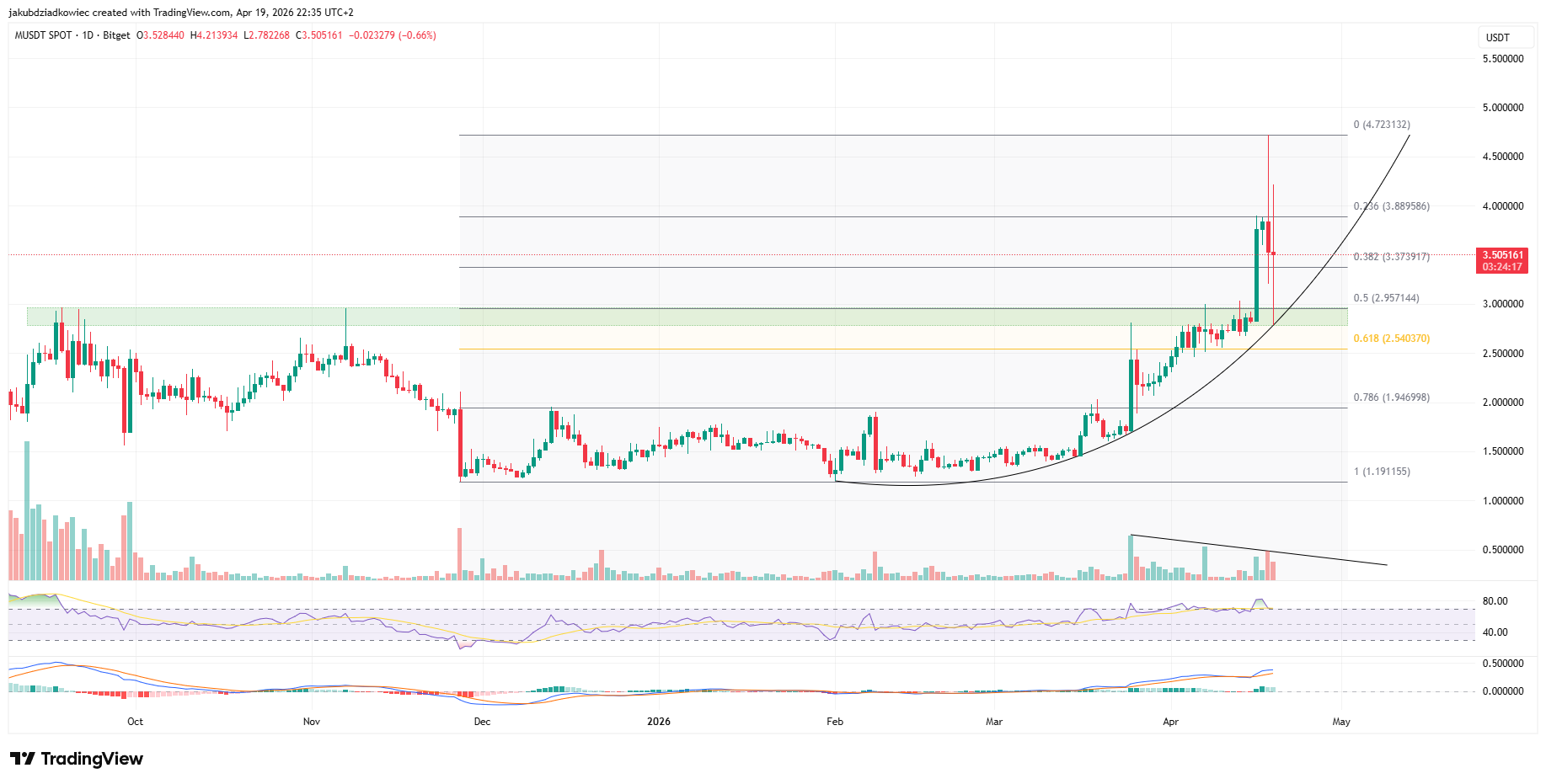 قیمت میم کور با ثبت ۲۴.۲ درصد سود در هفت روز گذشته، لیست سه آلت کوین این هفته را تکمیل میکند. این توکن در ۱۶ آوریل از یک محدوده مقاومتی چندینماهه عبور کرد و از آن زمان موفق شده این منطقه را به حمایت تبدیل کند. این مقاومت از ۱۷ سپتامبر ۲۰۲۵ مانع از رشد قیمت شده بود.