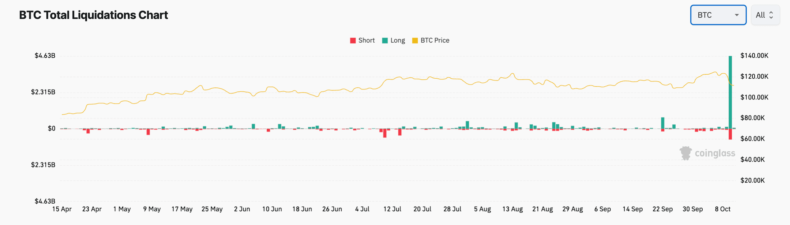 به گزارش کوین تلگراف، بیت کوین یک روز پس از آنکه شاهد بزرگترین سقوط یک روزه در تاریخ بود، تلاش کرد قیمت خود را بازیابی کند. در این روز بیش از ۵.۳۹ میلیارد دلار از پوزیشنهای اهرمدار در ۲۴ ساعت لیکویید شد که دو برابر «سقوط کووید-۱۹» در سال ۲۰۲۰ است.