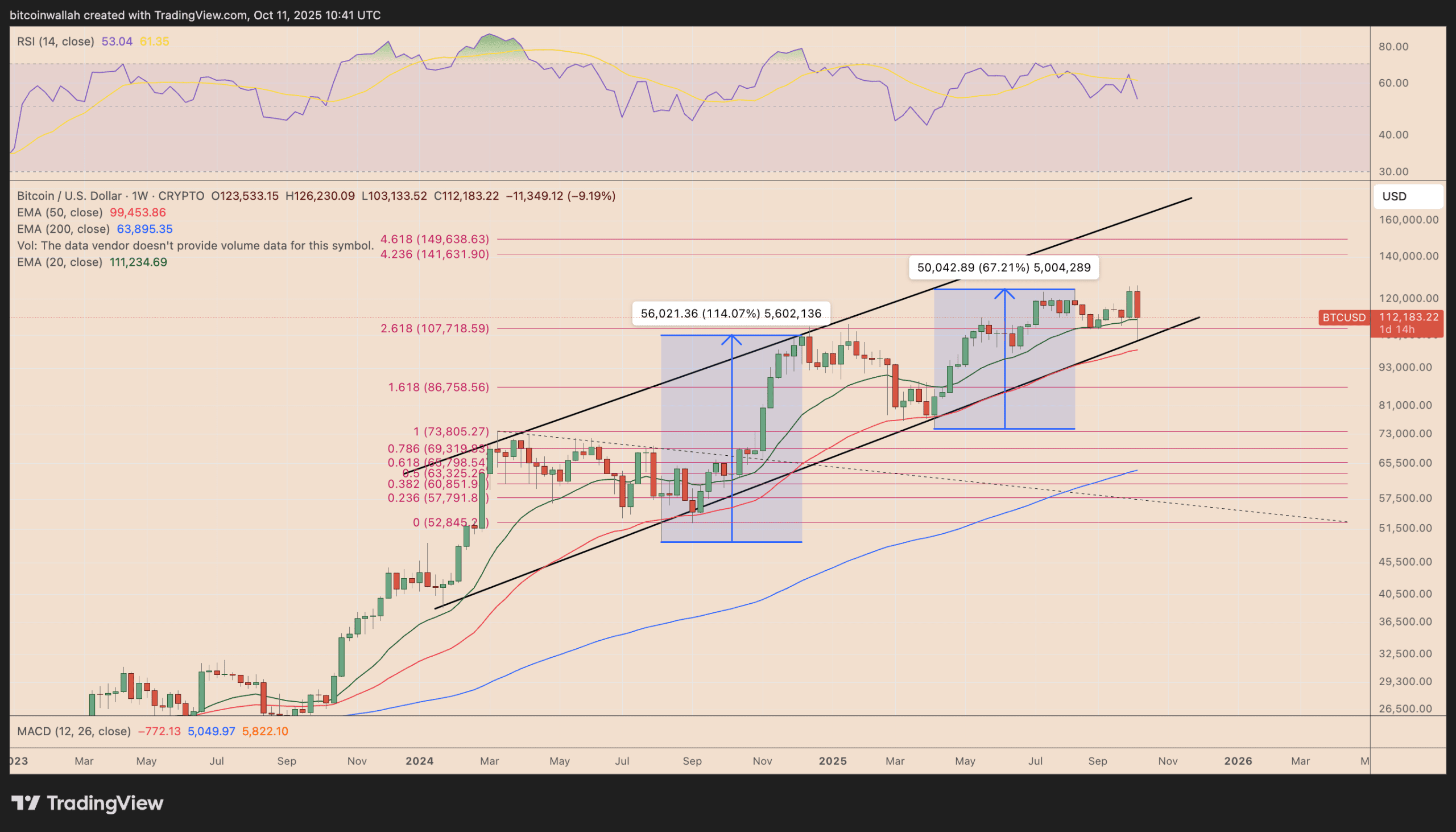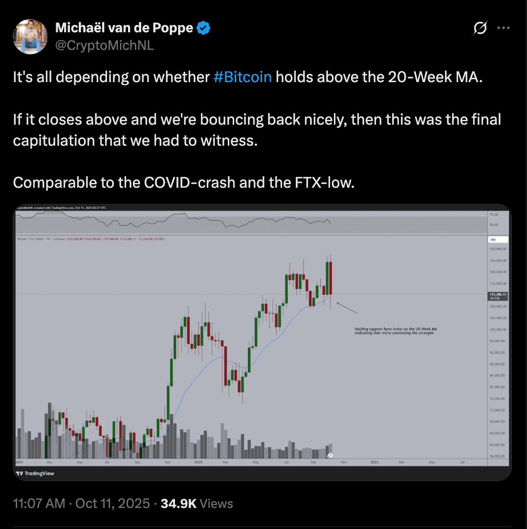 به گفته تحلیلگر مایکل ون دپوپه، سطح کلیدی که اکنون باید مراقب آن بود، میانگین متحرک ۲۰ هفتهای نزدیک به ۱۱۱,۰۰۰ دلار است.