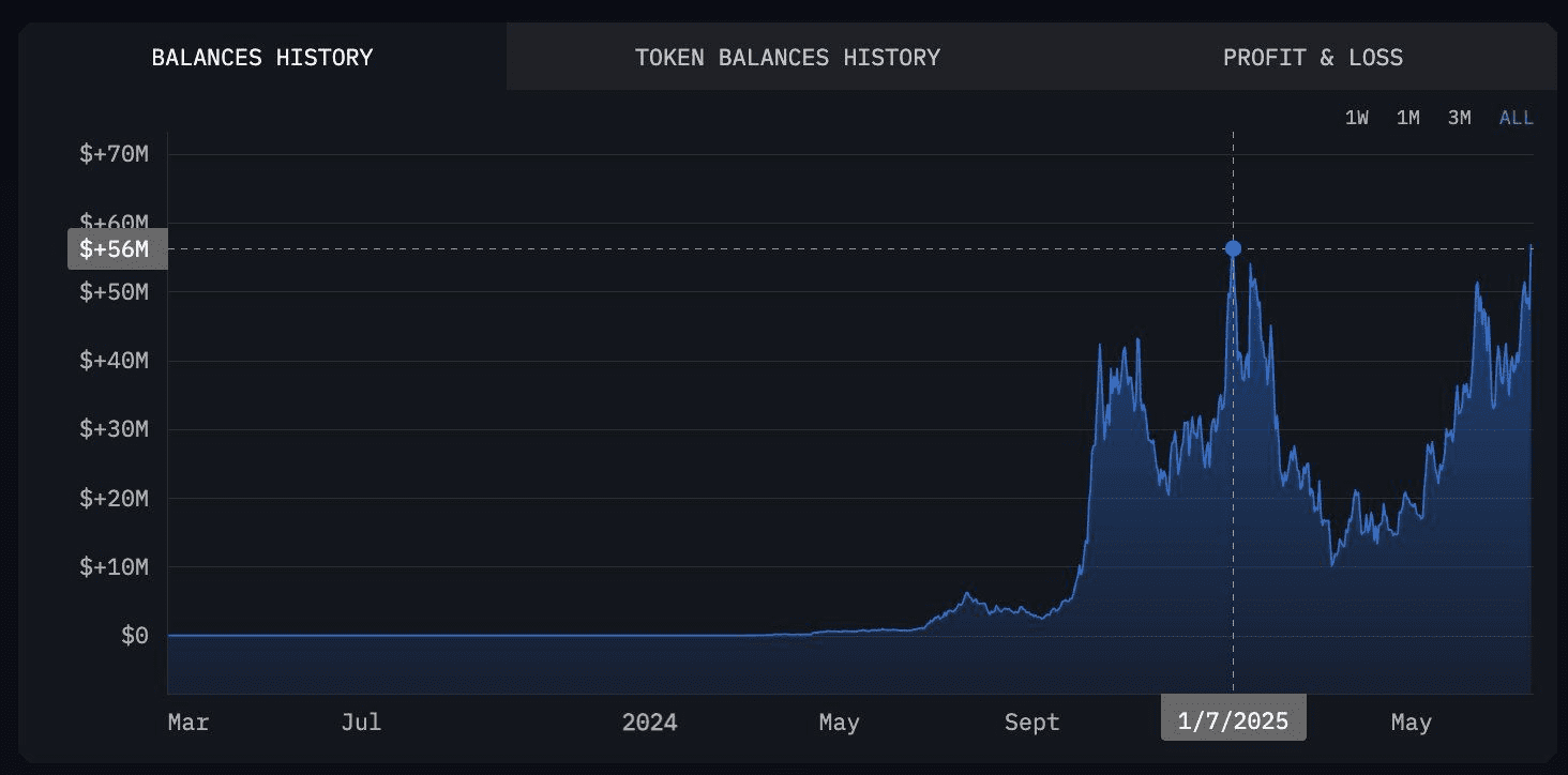 پرتفوی موراد به رکورد جدید ۵۶.۹ میلیون دلار رسیده است. او پس از گذشت نیم‌ سال، رکورد قبلی خود در ژانویه (دی ۱۴۰۳) را شکست. طی ۸ ماه گذشته، حتی یک توکن را جابه‌جا نکرده است.