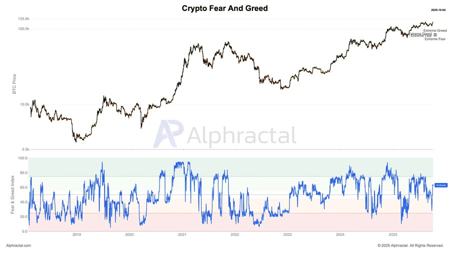 شاخص ترس و طمع کریپتو تا محدوده ۶۳ افزایش یافته که نشاندهنده خوشبینی فزاینده در بازار است. تحلیلگری به نام دارکفاست (Darkfost)، در این باره نوشته است: