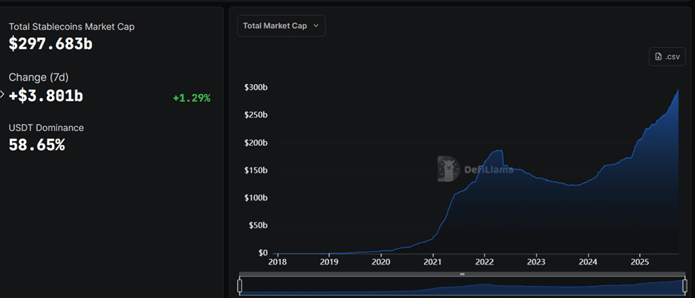 دویچر، استیبل‌ کوین‌ها را به عنوان اولین بخش برجسته کرده و آن را در حال ورود به فاز رشد پارابولیک (سهموی) توصیف می‌کند. عرضه جهانی استیبل‌ کوین‌ها از ۲۹۷ میلیارد دلار فراتر رفته و انتظار می‌رود که با گسترش پذیرش آن به نهادها و حتی بازیگران مستقل، در نهایت از مرز ۱ تریلیون دلار عبور کند.
