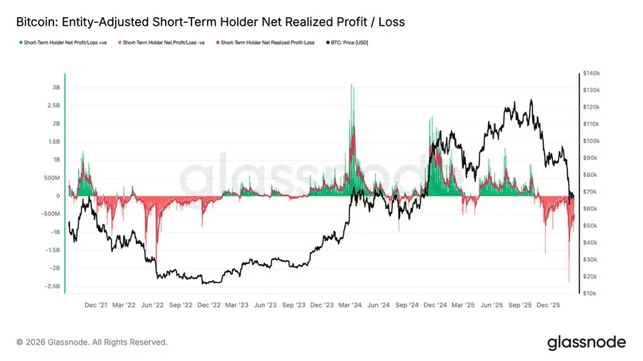 پلتفرم تحلیلی گلسنود در روز دوشنبه گزارش داد که میانگین متحرک هفتروزه زیانهای تحققیافته خالص برای سرمایهگذاران اخیر همچنان نزدیک به ۵۰۰ میلیون دلار در روز است و اشاره کرد که آنها همچنان در حال تسلیم شدن هستند.