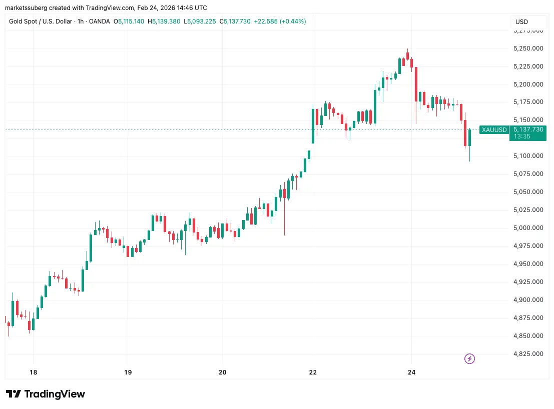 تنها بازار کریپتو نبود که آن روز در عملکرد ضعیف بود. طلا نیز در جلسه معاملاتی ایالات متحده کاهش یافت و در زمان نگارش با ۵,۱۴۰ دلار، ۲ درصد کاهش داشت.