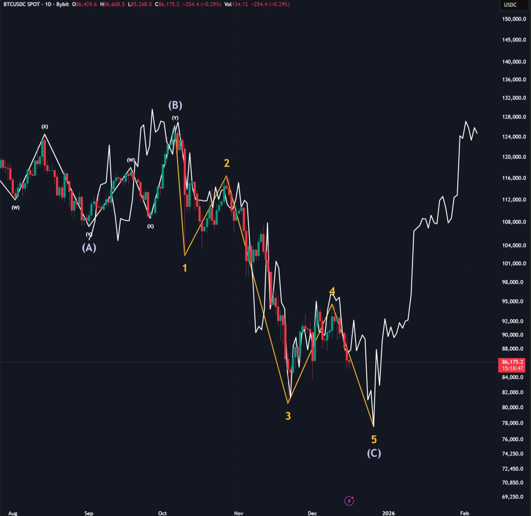 سقوط از ۱۲۶٬۰۰۰ دلار به ۱۰۰٬۰۰۰ دلار به دلیل فروش نهنگها بود. سقوط از ۱۰۰٬۰۰۰ دلار به ۸۵٬۰۰۰ دلار به دلیل فروش ETFها بود. حالا، سقوط بعدی به دلیل فروش خردهفروشان خواهد بود و آن زمان است که یک رالی آغاز میشود؛ یک سقوط برای جمعآوری کفهای ماه آوریل قبل از رالی بالای ۱۰۰٬۰۰۰ دلار در سه ماهه اول ۲۰۲۶.