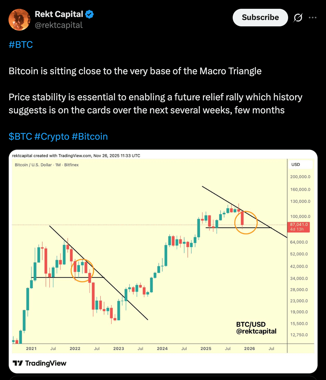 این ساختار نشان می‌دهد فروشندگان از بازار خارج نشده‌اند. بلکه دوباره برای فشار بیشتر سازمان‌دهی می‌شوند. به‌ویژه با توجه به اینکه BTC همچنان زیر میانگین‌های متحرک نمایی ۱۰۰ و ۲۰۰ روزه در حال معامله است.