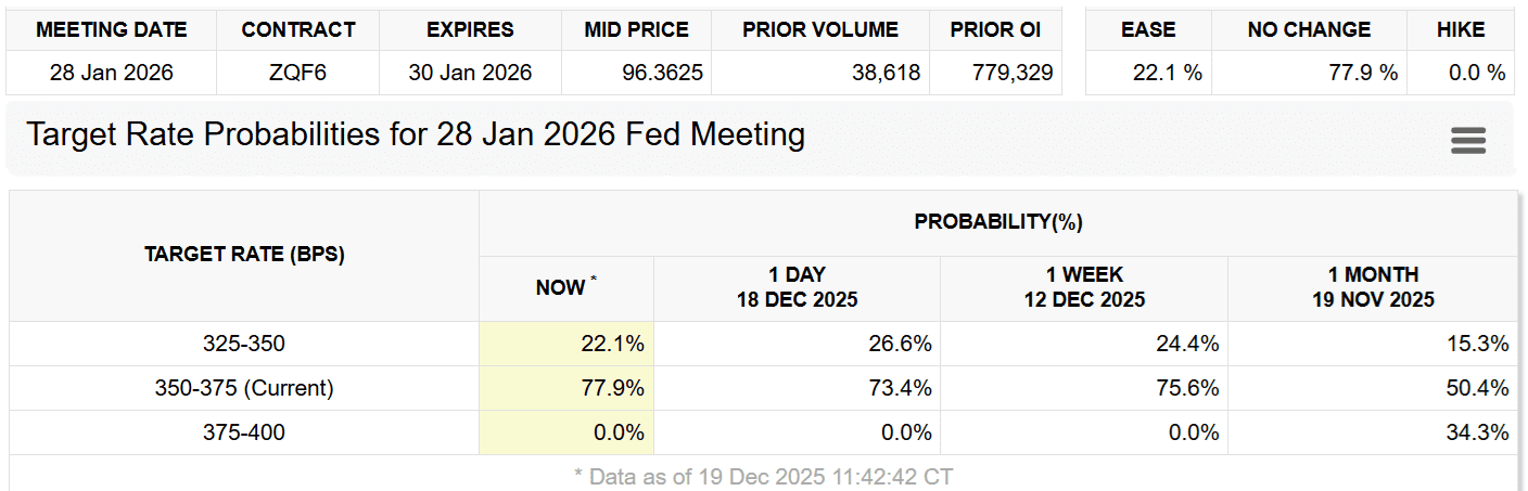 احتمالات نرخ هدف فدرال رزرو برای جلسه FOMC ژانویه ۲۰۲۶ (دی ۱۴۰۴)