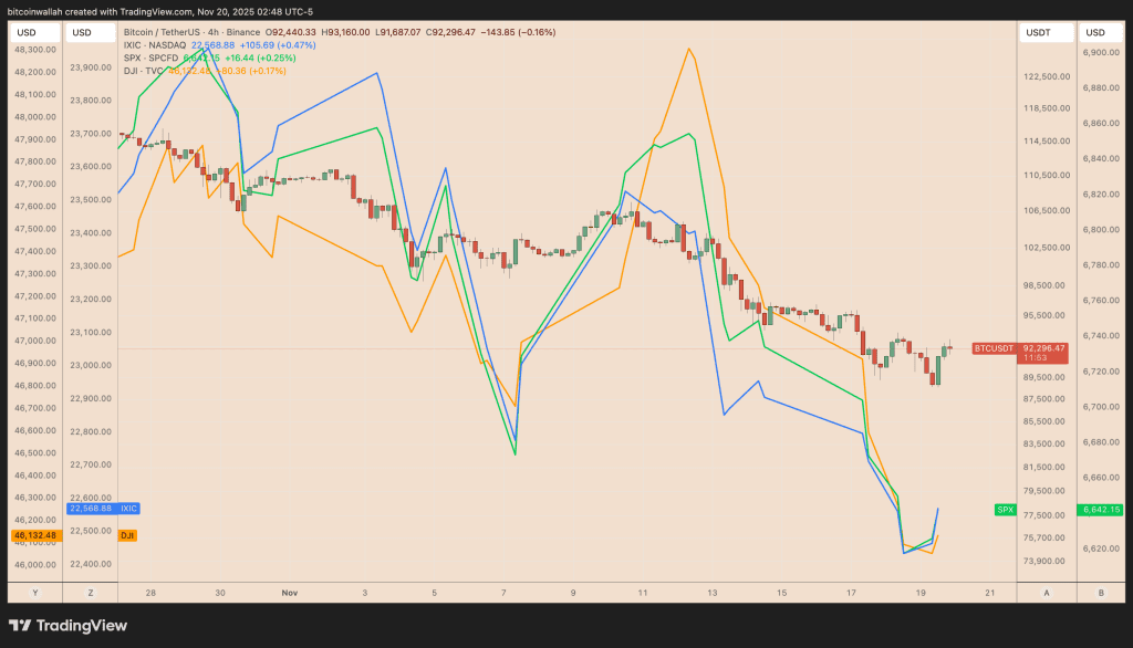 به گزارش کوین تلگراف، قیمت بیت کوین (BTC) پس از انتشار درآمد انویدیا که بیشتر ازحد انتظار بود و به آرام کردن ترس از حباب هوش مصنوعی کمک کرد، افزایش یافت اما این رالی به سرعت معکوس شد. زیرا شاخص داو جونز ۷۰۰ واحد را از دست داد و منفی شد و بازار سهام ایالات متحده با فروش گستردهای مواجه شد. پلتفرم دکوبیسی لتر تاکید کرد: