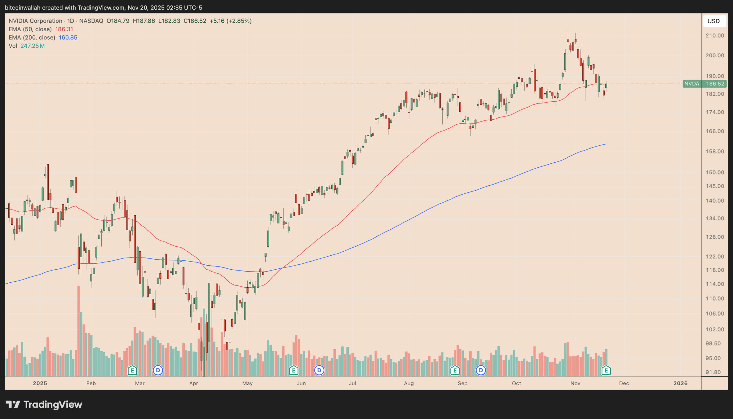 مهمتر اینکه، هر دو اصلاح ناشی از ترسهای کلان اقتصادی گستردهتر بودند. در سه ماهه اول ۲۰۲۵، این فشار فروش ناشی از جنگ تعرفهای ایالات متحده بود. این بار، کاتالیزور وحشت از یک حباب احتمالی هوش مصنوعی است، وحشتی که به شدت بر سهام فناوری تأثیر گذاشت و قبل از اینکه چشمانداز درآمد خوشبینانه انویدیا به آرام کردن بازارها کمک کند، به بازار کریپتو نیز سرایت کرد.