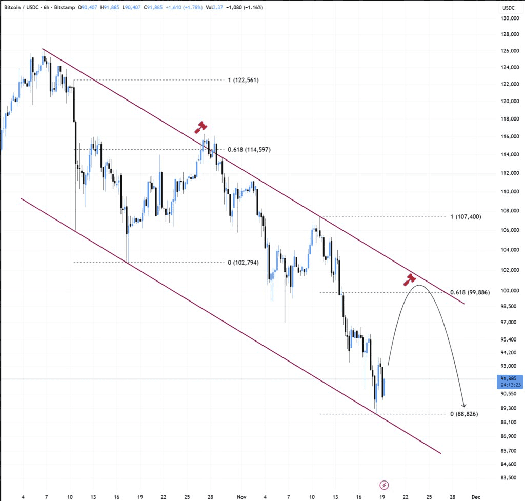 این فرکتال احتمال آزمایش مجدد ۱۰۰,۰۰۰ دلار به عنوان مقاومت توسط بیت کوین تا پایان سال را افزایش داد.