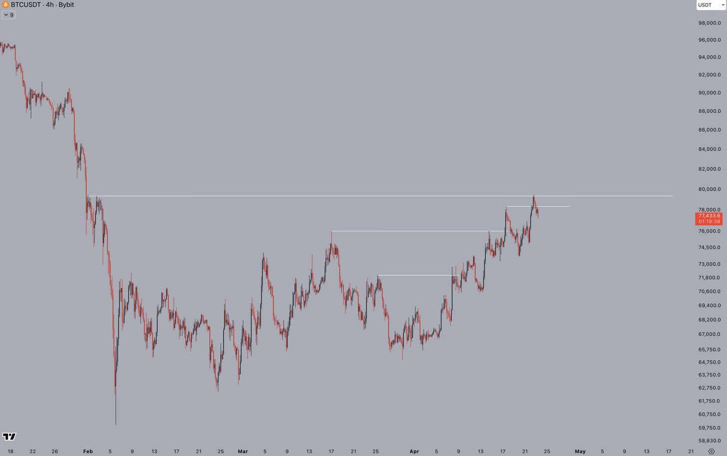 بیت کوین مدام سقفهای قیمتی را میزند و استاپلاسهای پوزیشنهای شورت را فعال میکند، اما حرکت صعودی را تثبیت نمیکند. مدتی بود که چنین رفتاری را ندیده بودیم. این معمولاً به این معناست که نقدینگی برای یک پوزیشن بزرگتر در حال جمعآوری است. سوال اینجاست که چه زمانی پا را روی پدال گاز میگذارند؟
