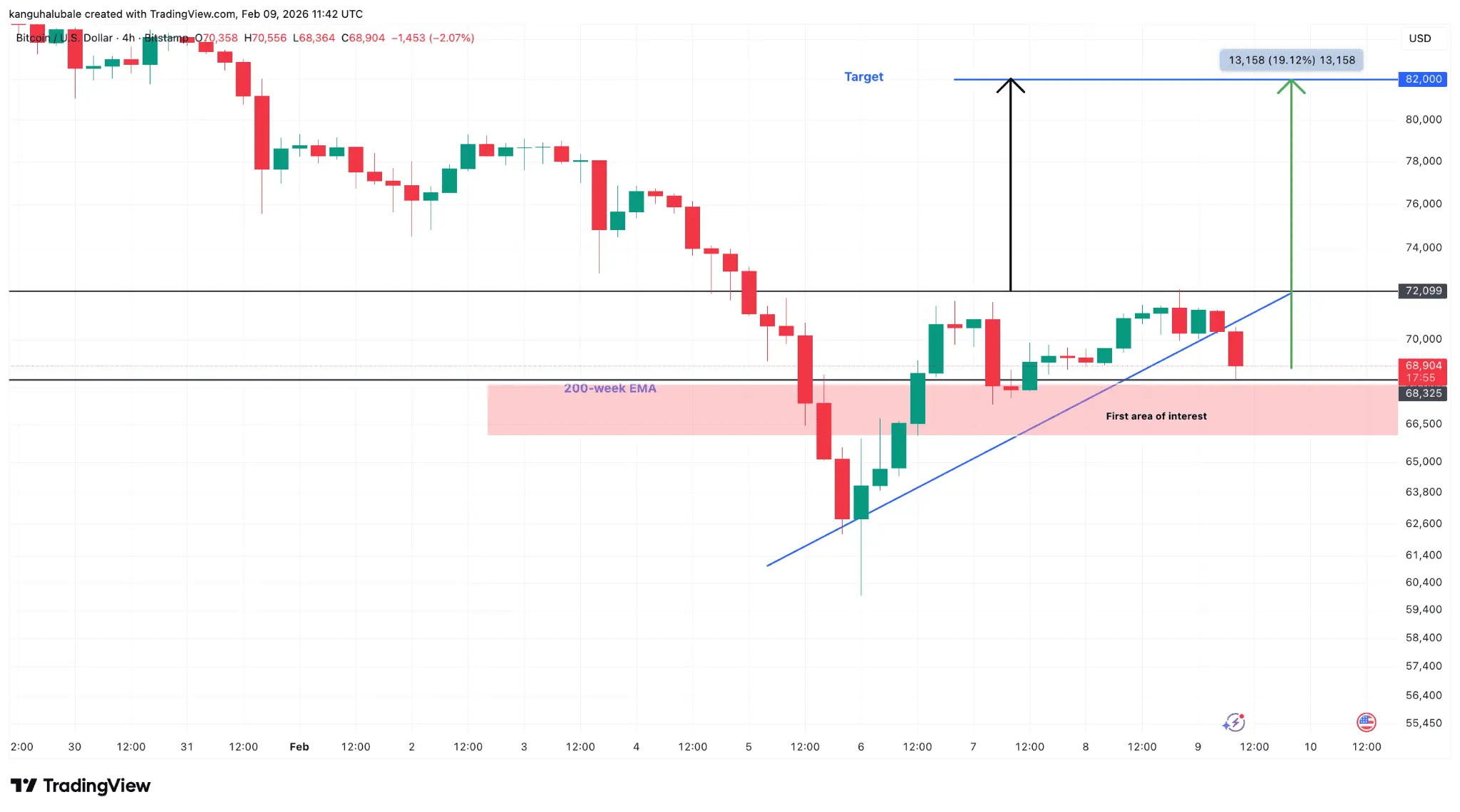 این تحلیلگر به حمایت هفتگی در ۶۶,۰۰۰ دلار اشاره کرد که به گفته تحلیلگری به اسم آلفابیت‌کوین، BTC احتمالاً قبل از اینکه بتواند بالاتر برود، آن را دوباره آزمایش خواهد کرد.