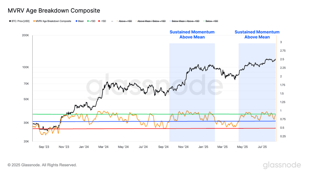 در طی اصلاح اخیر BTC شاخص MVRV ترکیبی در میانگین خود حمایت شد و در بالای این سطح باقی ماند. این نشان می‌دهد که علی رغم اصلاح قیمت بیت کوین، بسیاری از سرمایه‌گذاران همچنان در وضعیت سود باقی مانده‌ بودند. این داده‌ها در کنار داده‌های شاخص SOPR هولدرهای کوتاه‌مدت (که نشان داد ضرر تحقق‌نیافته این هولدرها در سطح محدود باقی مانده است) بر این مسئله تاکید می‌کند که سرمایه‌گذاران تمایلی به تسلیم شدن ندارند.