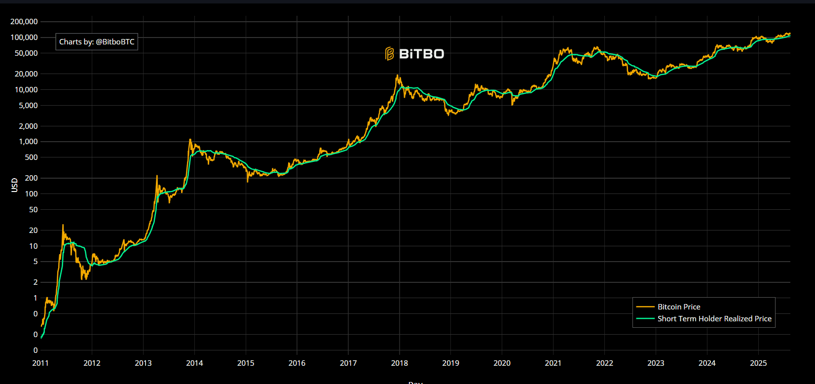 نکته مهم این است که طبق شاخص قیمت تحقق‌یافته هولدرهای کوتاه‌مدت، مهم‌ترین حمایت فعلی BTC در محدوده ۱۰۸٬۰۰۰ دلار قرار دارد. در نتیجه در صورت از دست رفتن‌ محدوده حمایتی ۱۱۲٬۰۰۰ تا ۱۱۰٬۰۰۰ دلاری، احتمال آزمایش مجدد این محدوده وجود دارد.