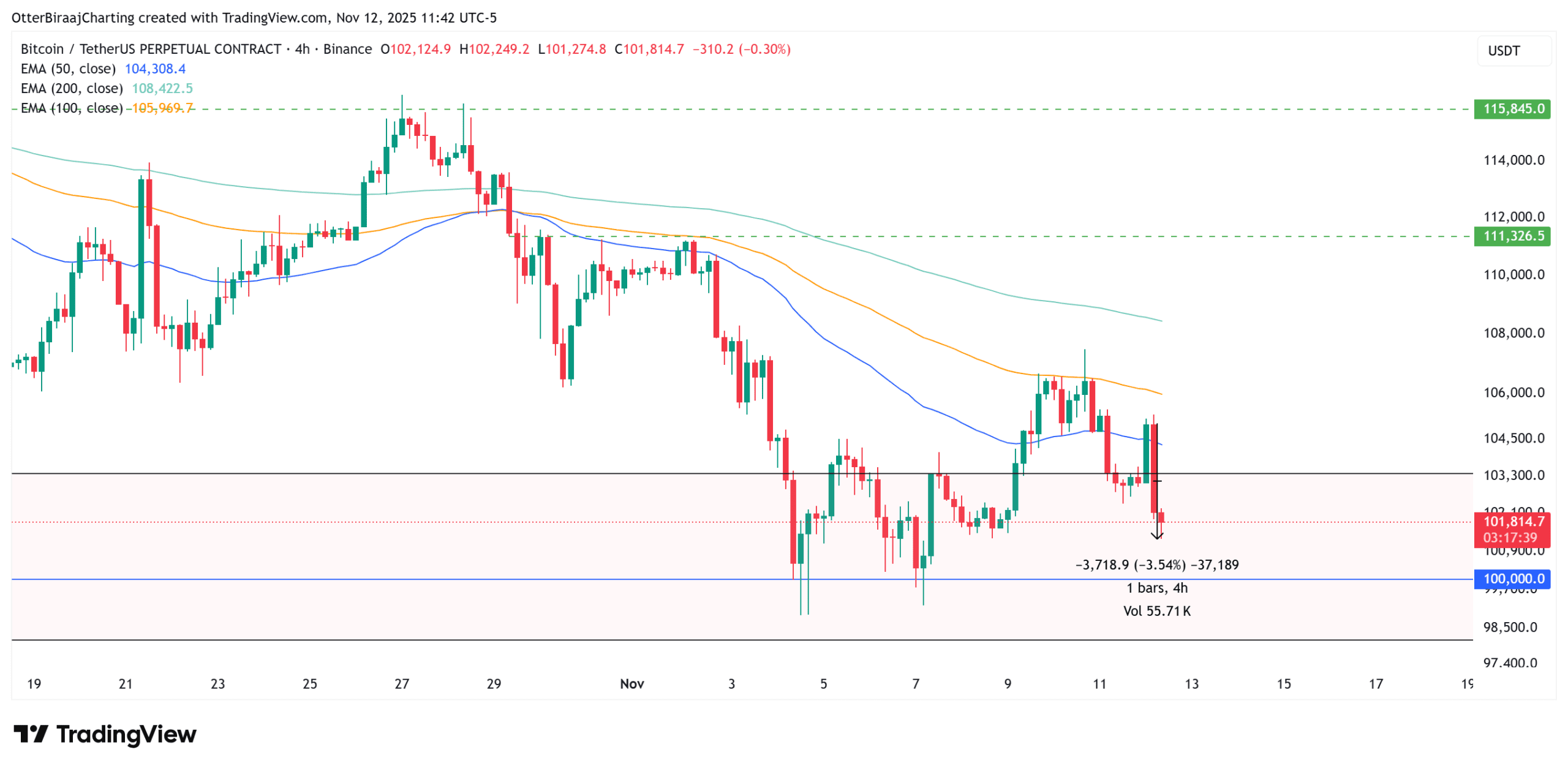 به گزارش کوین تلگراف، بازارهای سهام ایالات متحده در روز چهارشنبه اوج گرفتند، زیرا تمام شدن تعطیلی دولت آمریکا رسما تایید شد. از سوی دیگر، بیت کوین (BTC) از بالاترین حد روزانه ۱۰۵,۳۰۰ دلار به پایین‌ترین حد هفتگی نزدیک به ۱۰۱,۲۰۰ دلار کاهش یافت که نشان‌دهنده افت ۳.۴ درصدی است. البته سپس تا ۱۰۳٬۵۰۰ دلار رشد کرد.