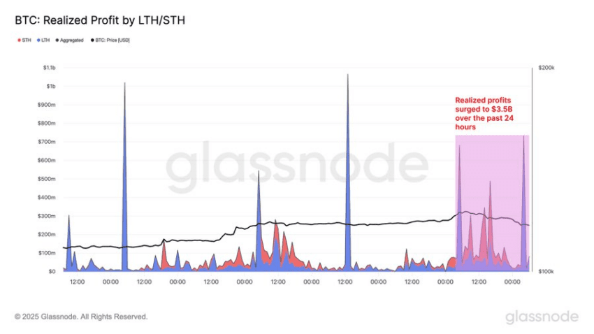 در نتیجه این فشار فروش، یکی از بزرگ‌ترین موج‌های برداشت سود در سال ۲۰۲۵ رخ داد. طبق گزارش گلس‌نود، سود محقق‌شده به ۳.۵ میلیارد دلار رسید. از این مقدار، ۱.۹۶ میلیارد دلار متعلق به هولدرهای بلندمدت و ۱.۵۴ میلیارد دلار مربوط به دارندگان کوتاه‌مدت بود.