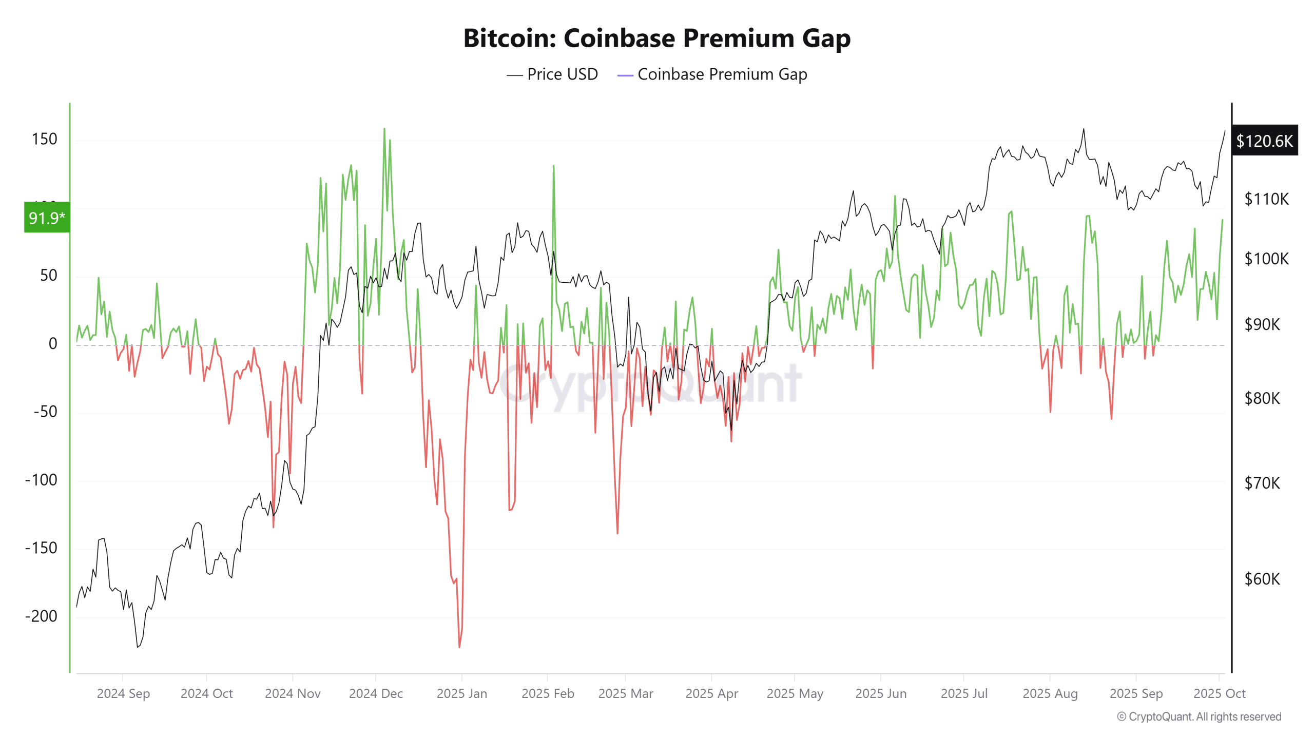 دادههای آنچین نیز این تقاضای قوی را تأیید میکند. حجم خرید بیت کوین در یک ساعت بیش از ۱.۶ میلیارد دلار افزایش یافت. همچنین اختلاف قیمت بین کوینبیس و بایننس، موسوم به «گپ پریمیوم کوینبیس»، به ۹۲ دلار رسید. این یعنی سرمایهگذاران آمریکایی حاضرند برای خرید بیت کوین در کوینبیس مبلغ بیشتری بپردازند که نشانهای از رشد تقاضا در آمریکا است.