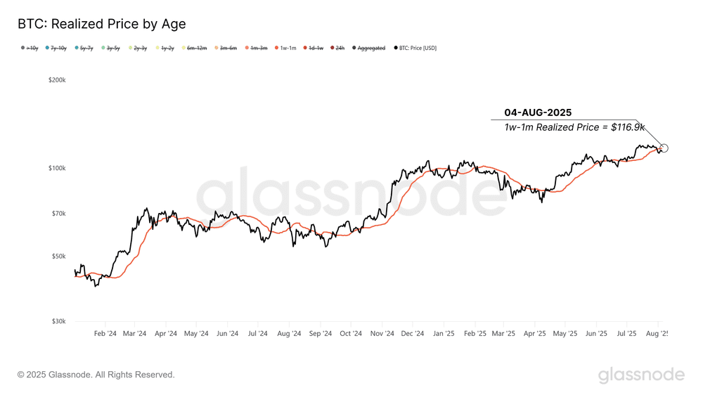 علیرغم خرید قابلتوجهی که در هفته گذشته انجام شد، بازار هنوز قدرت لازم برای رشد و رسیدن به قیمت خرید سرمایهگذاران جدید (که در ماه گذشته به بازار وارد شدهاند) را ندارد. قیمت خرید این دسته از هولدرها (هولدرهای یک هفته تا یک ماه قبل) تقریبا ۱۱۶٬۹۰۰ دلار است. به همین خاطر این محدوده مقاومت مهمی برای قیمت بیت کوین محسوب میشود.
