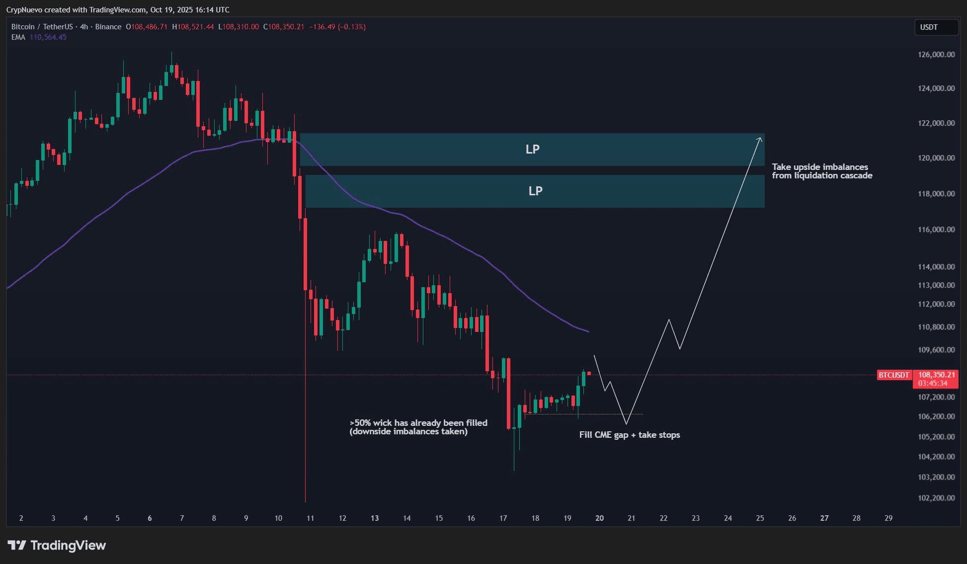 تریدرها احتمالا نوسانات زیادی می‌بینند. بر اساس تحلیل تریدر «CrypNuevo»، احتمال یک شورت اسکوئیز (Short Squeeze) وجود دارد؛ یعنی معامله‌گران شورت ممکن است مجبور به خرید بیت‌کوین شوند و باعث جهش سریع قیمت گردند. او گفت: