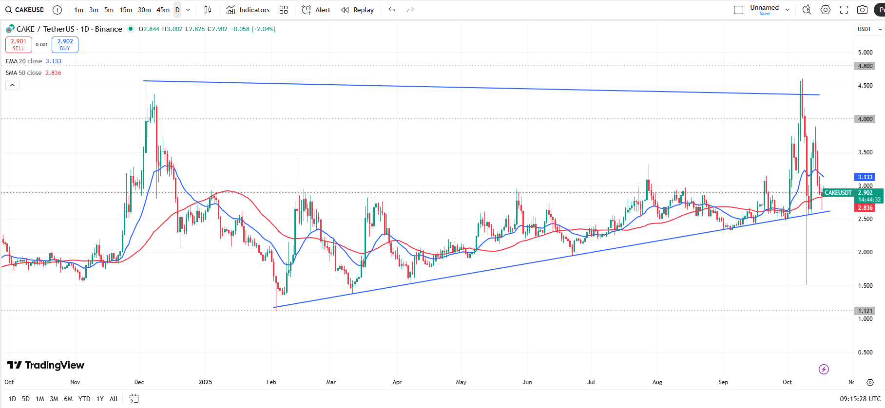 طبق دادههای تریدینگویو، پنکیک سواپ شاهد شکلگیری یک الگوی مثلث صعودی است که از اوایل سال ۲۰۲۵ تاکنون در حال تکمیل است.