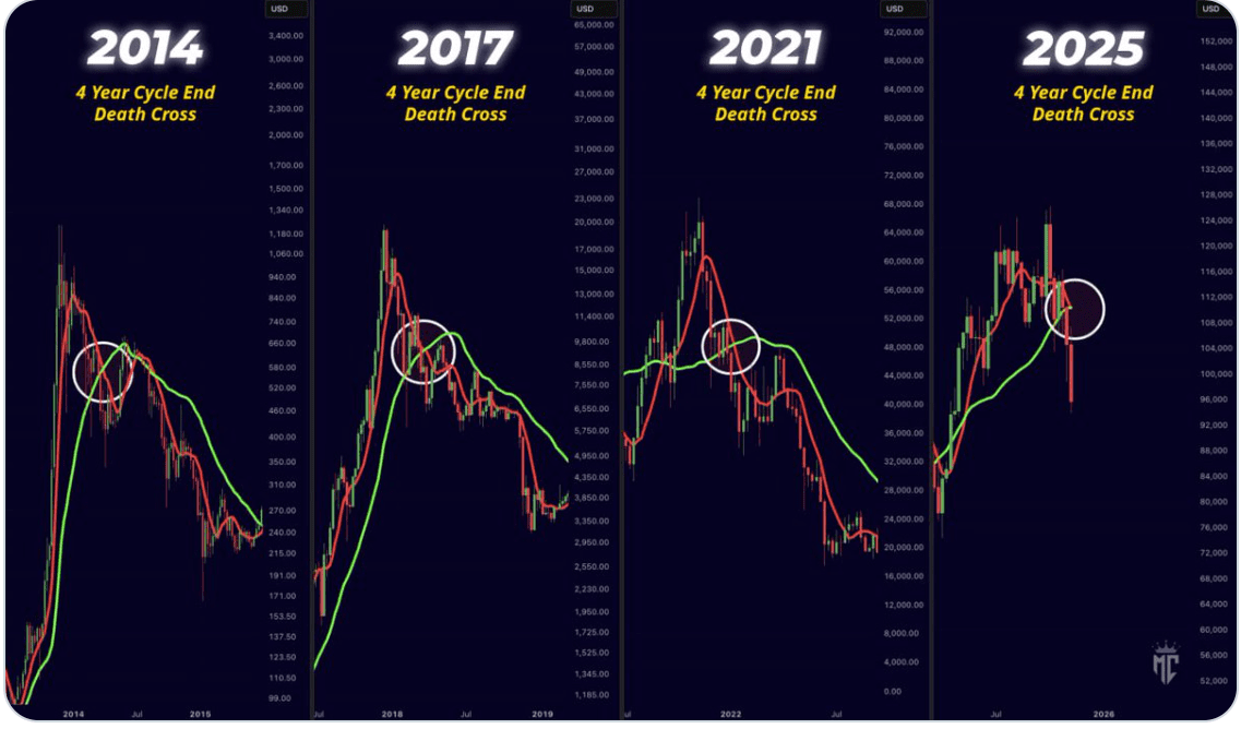 تحلیلگر «میستر کریپتو» میگوید هر چرخه بیت کوین با یک تقاطع مرگ به پایان رسیده است و این بار هم احتمالاً از این قاعده مستثنی نیست.