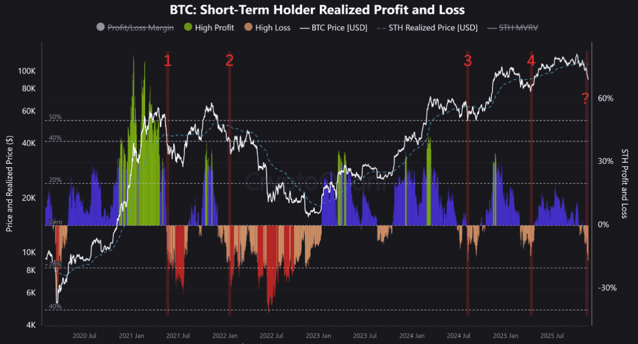 تحلیلگر IT Tech از کریپتوکوانت نیز میگوید فروش شدید هولدرهای کوتاهمدت معمولاً نشانهی تشکیل کف قیمتی است، اما فقط اگر قیمت بتواند سریعاً به بالای قیمت تمامشدهی آنها برگردد. اگر این اتفاق نیفتد، بازار نزولی عمیقتر میشود.