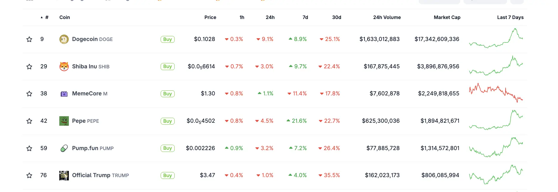 ارزش بازار میم کوین‌ها همچنان از دوج کوین پیروی می‌کند