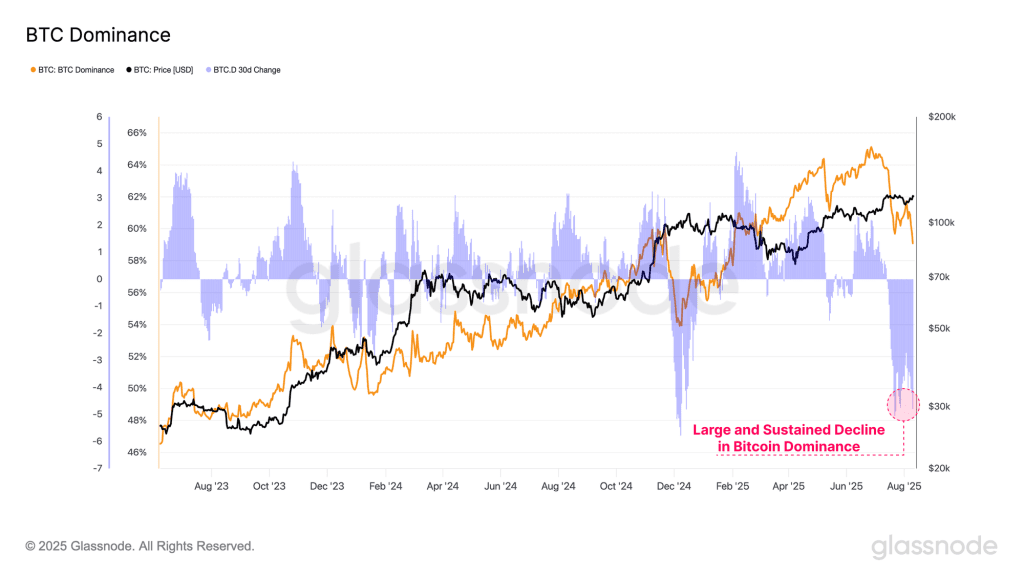 انتقال سرمایه جاری در بازار به سمت اتریوم و آلت کوین‌ها در شاخص دامیننس بیت کوین (Bitcoin Dominance) نیز مشهود است. شاخص دامیننس بیت کوین که سهم بیت کوین از کل بازار ارز دیجیتال را نشان می‌دهد، در طی ماه‌های اخیر از ۶۵ درصد به ۵۹ درصد کاهش یافت که نشان‌دهنده انتقال پول از بیت کوین‌ به دارایی‌های پرریسک‌تر از جمله آلت کوین‌ها است.