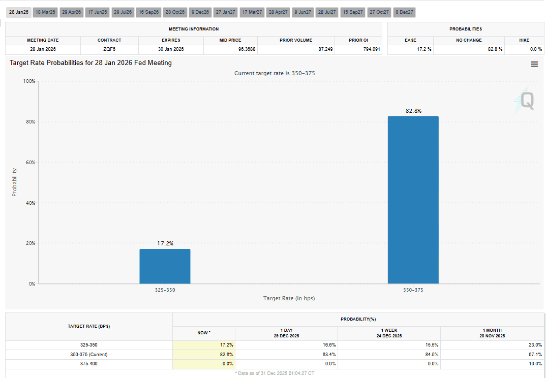 • صورت‌جلسه فدرال رزرو نشان می‌دهد پس از کاهش ۰.۲۵ درصدی نرخ بهره در دسامبر، سیاست‌گذاران به توقف تمایل دارند و احتمال کاهش بعدی حداقل تا مارس یا حتی آوریل به تعویق افتاده است.