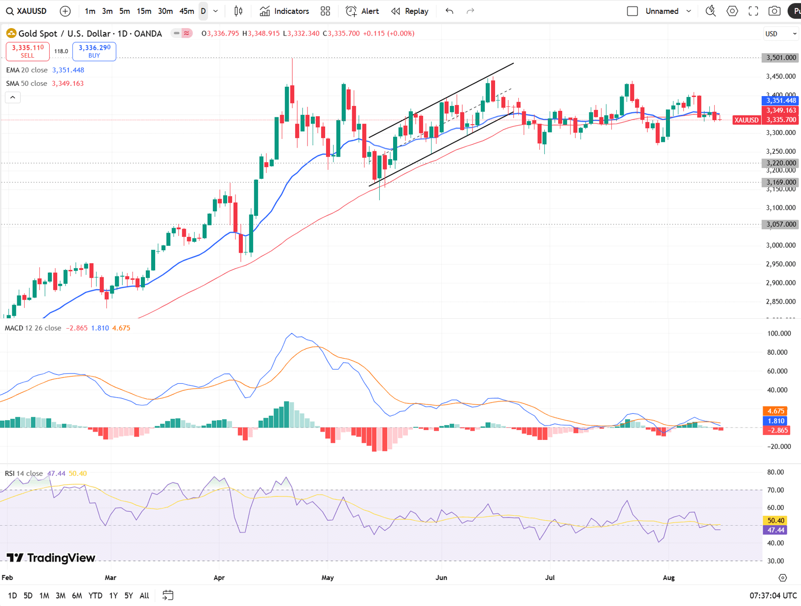 به گزارش دیلی‌فارکس، قیمت طلا هفته‌های قبل تا مقاومت ۴٬۴۱۰ دلار افزایش یافت و سپس به حدود ۳٬۳۳۵ دلار رسید. افزایش تقاضای طلا پس از اظهارات اسکات بیسنت، وزیر خزانه‌داری آمریکا، شکل گرفت که از کاهش نیم درصدی نرخ بهره در ماه سپتامبر (شهریور) حمایت کرد.