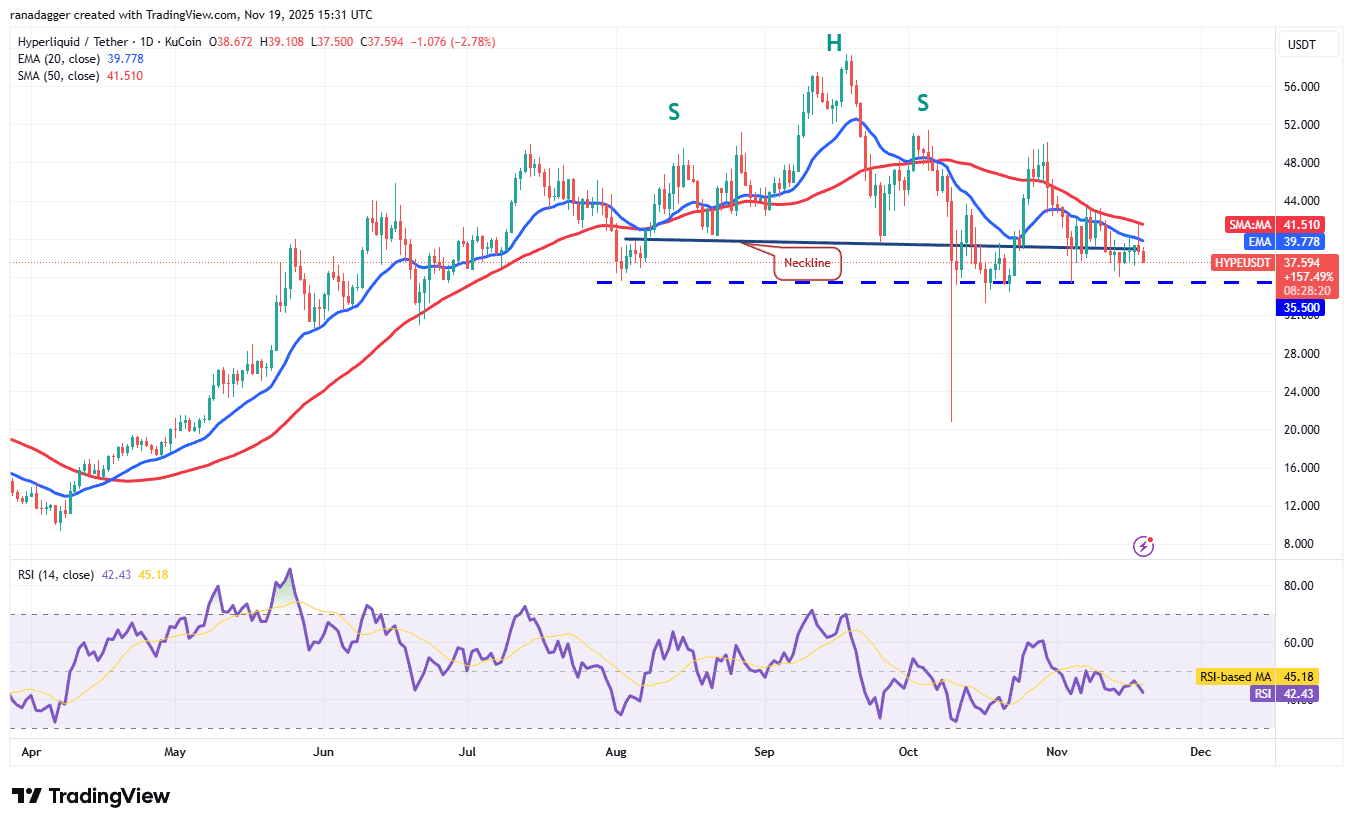 قیمت هایپر‌لیکویید سپس کاهش یافت و خرس‌ها در تلاشند تا HYPE/USDT را به زیر حمایت ۳۵.۵۰ دلار بکشانند. اگر موفق شوند، فشار فروش ممکن است تسریع یابد و قیمت هایپر‌لیکویید می‌تواند به ۲۸ دلار سقوط کند.