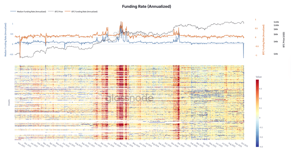 با حذف اهرم‌های بازار فیوچرز، فشار روانی در این بازار شدت گرفت و شاخص فاندینگ ریت (Funding Rates) به سطوحی سقوط کرد که آخرین بار در زمان ورشکستگی صرافی FTX در اواخر ۲۰۲۲ (اوایل زمستان ۱۴۰۱) دیده شده بود.