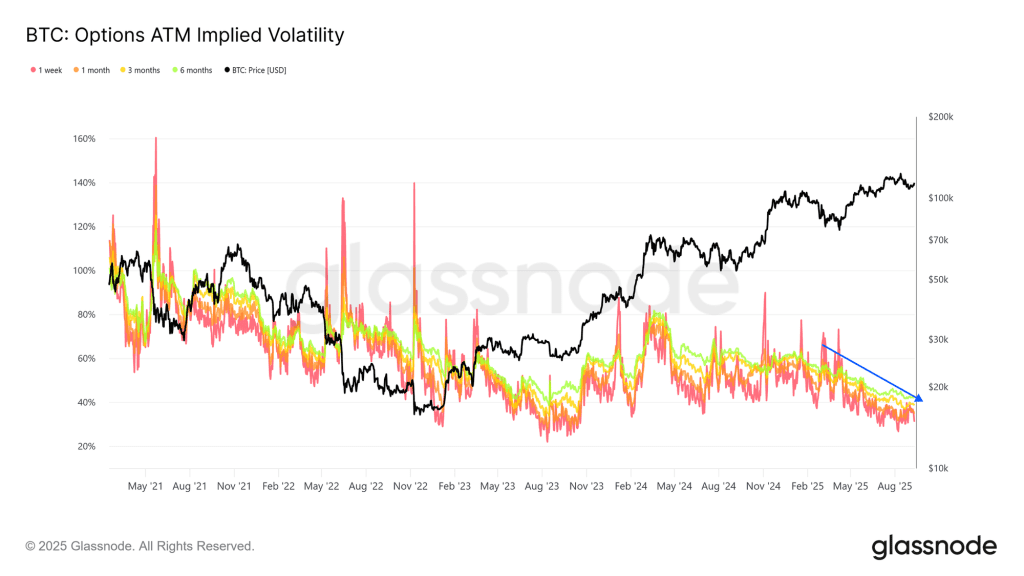کاهش نوسانات ضمنی بازار آپشن بیت کوین همچنان ادامه دارد و این نشاندهنده بلوغ و نقدشوندگی بالای این بازار است. نوسان فروشی (Volatility Selling) که یکی از استراتژیهای رایج در بازار مالی سنتی است، نوسانات ضمنی بازار آپشن را تا حد زیادی کاهش داده و باعث شده است که بازار آپشن بیت کوین در مقایسه با چرخههای قبل، پایدار و باثبات باشد.