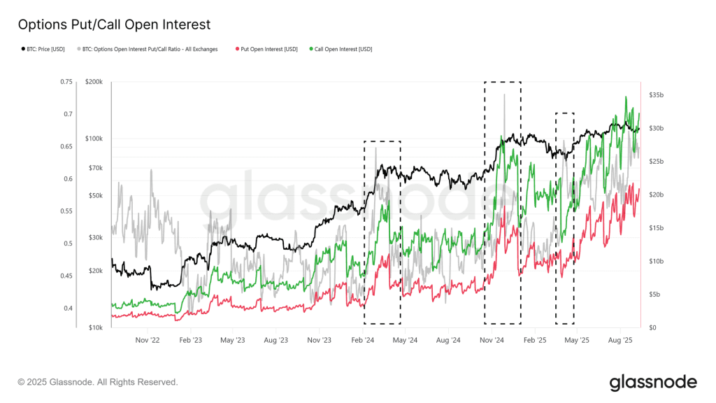 اوپن اینترست بازار آپشن بیت کوین به رکورد جدیدی دست یافته است و این نقش حیاتی بازار آپشن در وضعیت فعلی را نشان میدهد. سرمایهگذاران نهادی در کنار سرمایهگذاری در بازار اسپات بیت کوین از طریق ETFها، از ابزارهای مختلف بازار آپشن مثل پروتکتیو پوت (Protective Put) و کاورد کال (Covered Call) برای مدیریت ریسک استفاده میکنند.