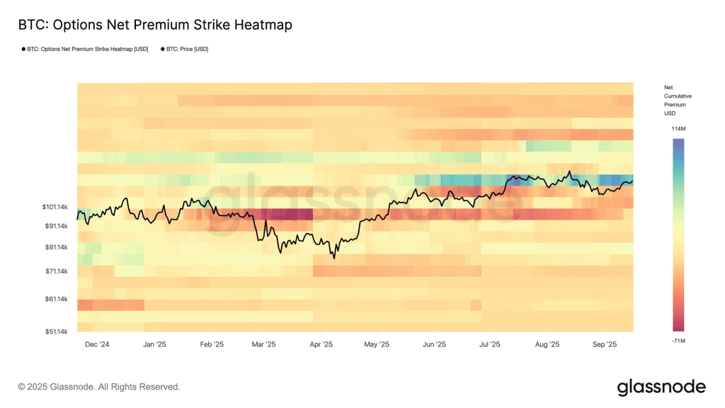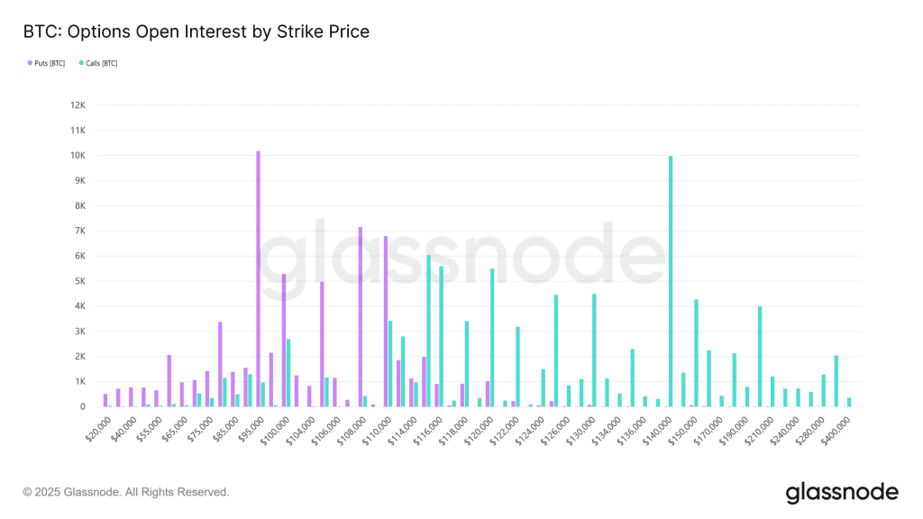 سررسید ۲۶ سپتامبر، بزرگترین سررسید تاریخ بیت کوین است و در واقع نتیجه تجمیع قراردادها در طول ۹ ماه اخیر است. توزیع قیمتهای اعمال (Strike) این سررسید بهصورت غیرمعمولی گسترده است؛ اوپن اینترست قراردادهای پوت (Put) نزدیک ۹۵,۰۰۰ دلار و اوپن اینترست قراردادهای کال (Call) در اطراف ۱۴۰,۰۰۰ دلار متمرکز شدهاند. با توجه به قیمت فعلی بیت کوین، این قراردادها احتمالا با اختلاف قیمت زیادی منقضی خواهند شد. با این حال، این دادهها به ما نشان میدهد که معاملهگران در طول سال بر این دو محدوده کلیدی (۱۴۰,۰۰۰ و ۹۵,۰۰۰ دلار) متمرکز شدهاند و استراتژیهای خود را بر اساس این دو محدوده تنظیم کردهاند.