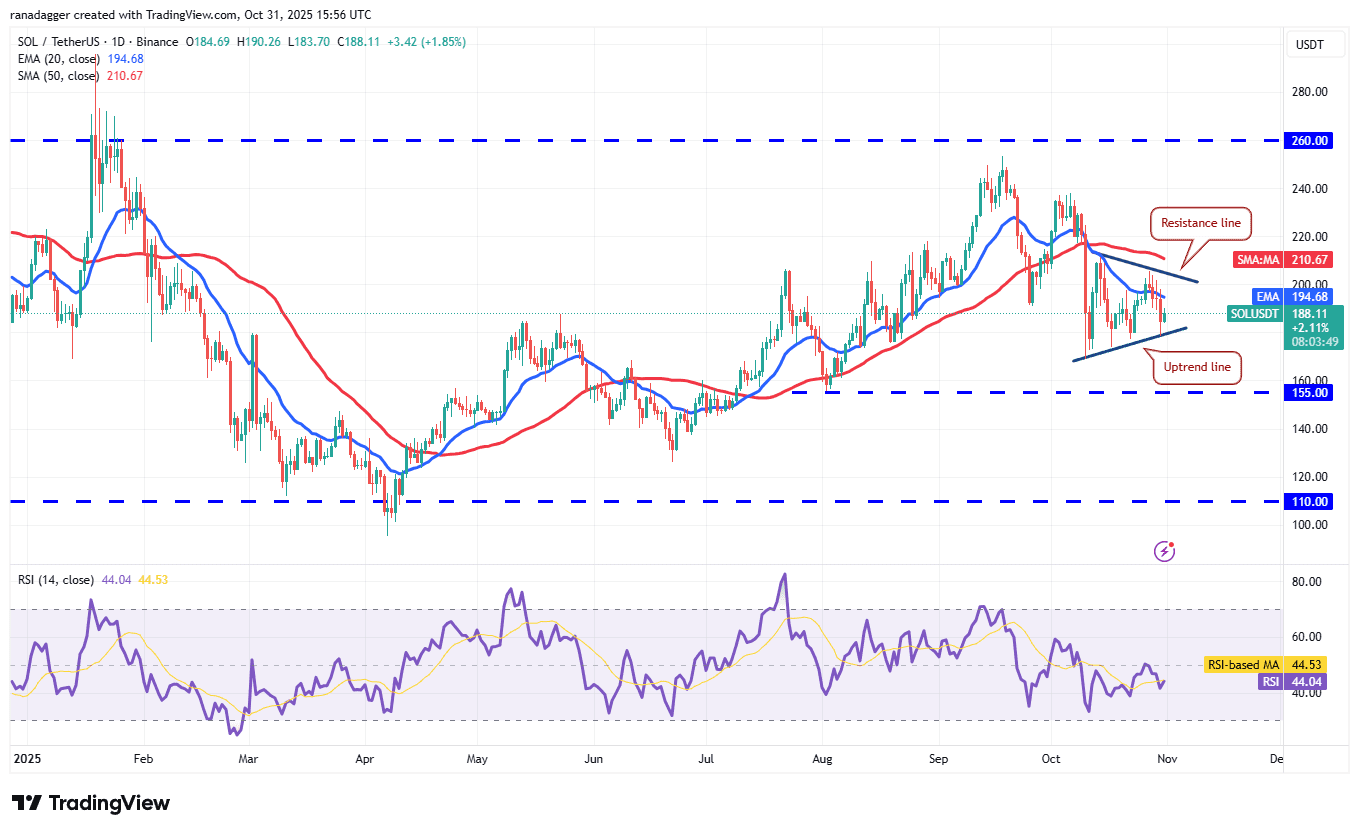 اگر قیمت SOL از خط روند صعودی بالا برود و به بالای میانگین متحرک نمایی ۲۰ روزه (۱۹۴ دلار) برسد، نشان می‌دهد که ممکن است برای مدتی بیشتر در داخل مثلث باقی بماند. خریداران پس از اینکه قیمت SOL را بالای خط مقاومت برسانند، دوباره کنترل بازار را به دست خواهند گرفت.