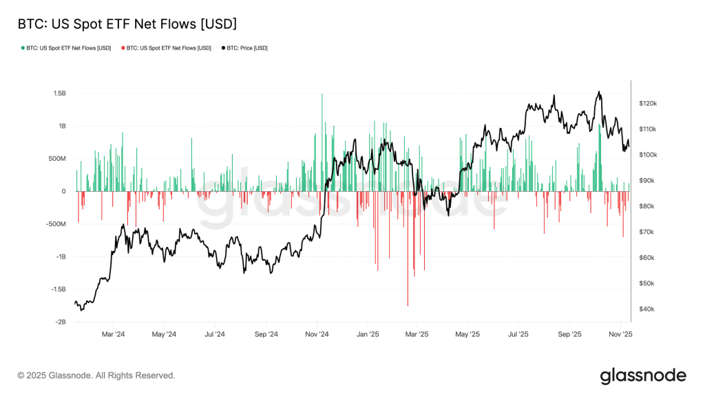 در هفتههای اخیر، خروج ملایم سرمایه از ETFهای اسپات بیت کوین را شاهد بودیم که نشانه ضعف روند قیمت بیت کوین است. پس از جریانهای ورودی قوی در اواسط سال میلادی، اکنون تقاضای نهادی و انباشت از سمت سرمایهگذاران بزرگ بهطور قابلتوجهی کاهش یافته است.