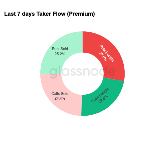 جریان معاملات بازار آپشن در هفته گذشته بر این موضوع تاکید میکند که معاملهگران موضع احتیاط و پوشش ریسک اتخاذ کردهاند. بخش عمده فعالیت بازار آپشن مربوط به خرید قراردادهای پوت با قیمتهای اعمال ۱۰۸,۰۰۰ تا ۹۵,۰۰۰ دلار است. بخشی از قراردادها مثل موقعیت پوت با قیمت اعمال ۱۰۰,۰۰۰ دلار و سررسید ۲۸ نوامبر (۷ آذر) با هدف پوشش ریسک بلندمدت خریداری شدهاند. برخی دیگر، بر اساس رویدادهای مهم تقویمی هستند؛ مثل خرید قراردادهایی با قیمت اعمال ۱۰۸,۰۰۰ دلار برای ماه نوامبر و فروش همین قراردادها برای ماه دسامبر.