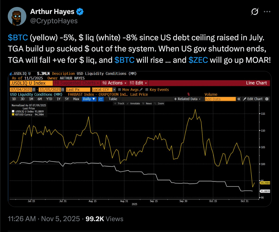 در حال حاضر، وزارت خزانهداری حجم زیادی از بدهی را منتشر میکند که موجب کاهش نقدینگی دلار میشود. در حالی که حساب عمومی خزانه (TGA) حدود ۱۵۰ میلیارد دلار بالاتر از هدف ۸۵۰ میلیاردی قرار دارد. به عبارت دیگر هنوز پول جدید وارد چرخه اقتصادی نشده است. این کمبود موقت نقدینگی یکی از دلایل اصلی افت اخیر قیمت بیت کوین به شمار میرود.