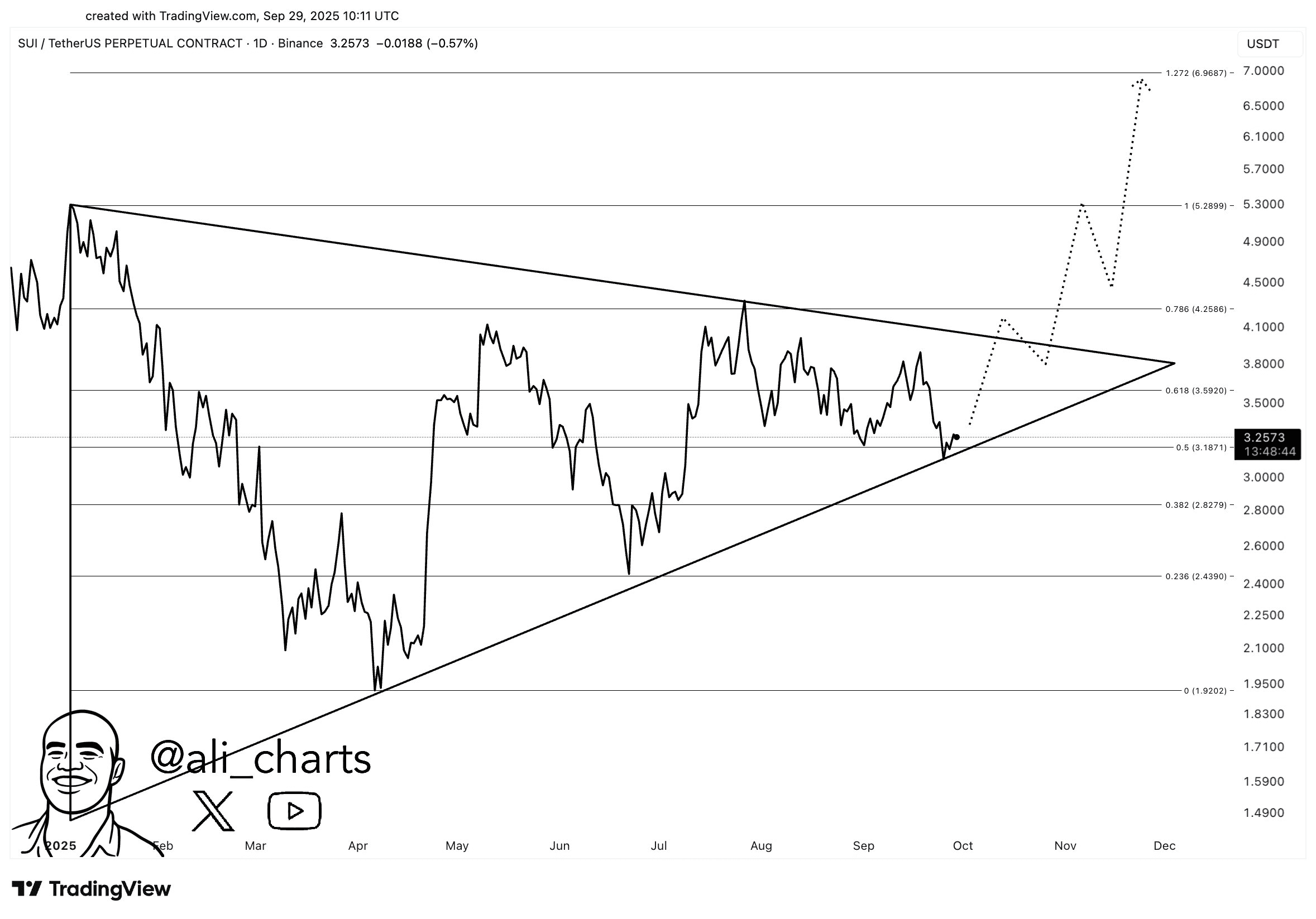 مارتینز تحلیل خود را با بلاکچین لایه ۱ سویی (SUI) به پایان رساند. او تاکید کرد که این آلت کوین در محدوده خرید قرار دارد. به نظر او قیمت سویی ممکن است تا پایان سال به ۷ دلار برسد!