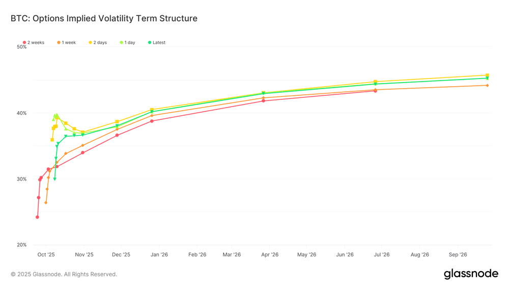 با آغاز سه‌ماه چهارم سال ۲۰۲۵ و تنظیم مجدد قراردادهای آپشن توسط معامله‌گران، نوسانات ضمنی این بازار افزایش یافته است. در طی دو هفته اخیر، تمام نمودارهای زمانی نوسانات ضمنی با یک شیب ثابت افزایش یافته است. این موضوع نشان می‌دهد که خوشبینی و تقاضا برای معاملات آپشن در میان سرمایه‌گذاران بیشتر شده است.