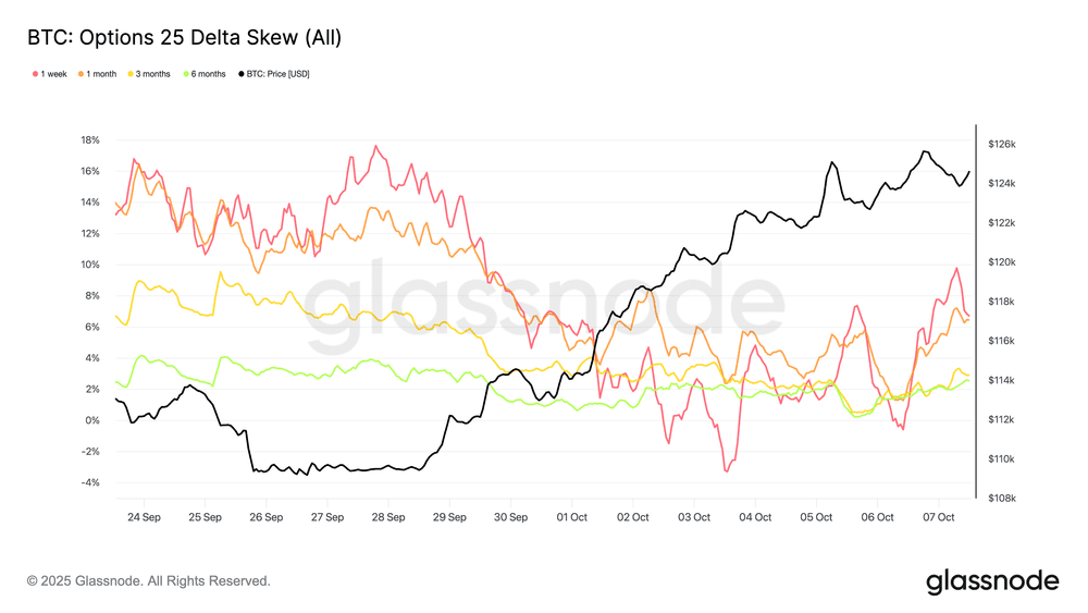سررسید ۳۱ اکتبر (۱۰ آبان)، که با افسانه رشد بیت کوین در ماه اکتبر هم‌زمان است، از ۳۴ واحد نوسانات ضمنی (vols) به ۳۶ واحد افزایش یافته است. از طرف دیگر، سررسید‌های بلندمدت نیز به‌اندازه ۱ واحد نوسانات ضمنی رشد کرده است. این موضوع نشان می‌دهد که معامله‌گران نه تنها در کوتاه‌مدت احساسات صعودی دارند، بلکه اطمینان دارند که رشد بیت کوین در سال ۲۰۲۶ نیز ادامه‌دار خواهد بود.