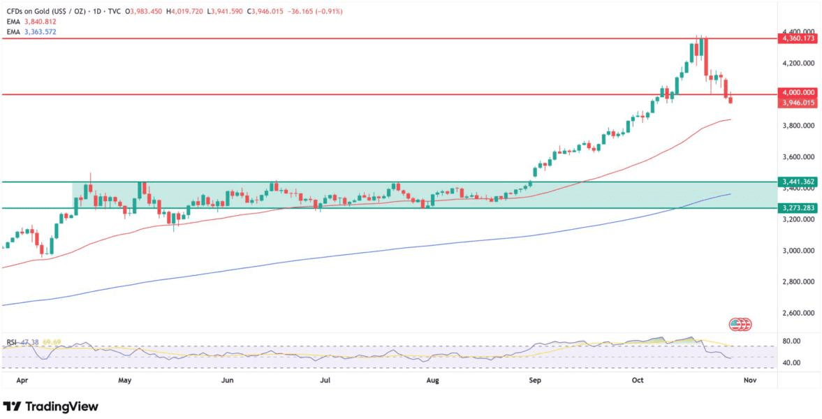 قیمت طلا با سقوط به زیر ۴٬۰۰۰ دلار و افت بیش از ۳ درصد، بزرگترین ریزش خود از سال ۲۰۲۰ را تجربه کرد.
