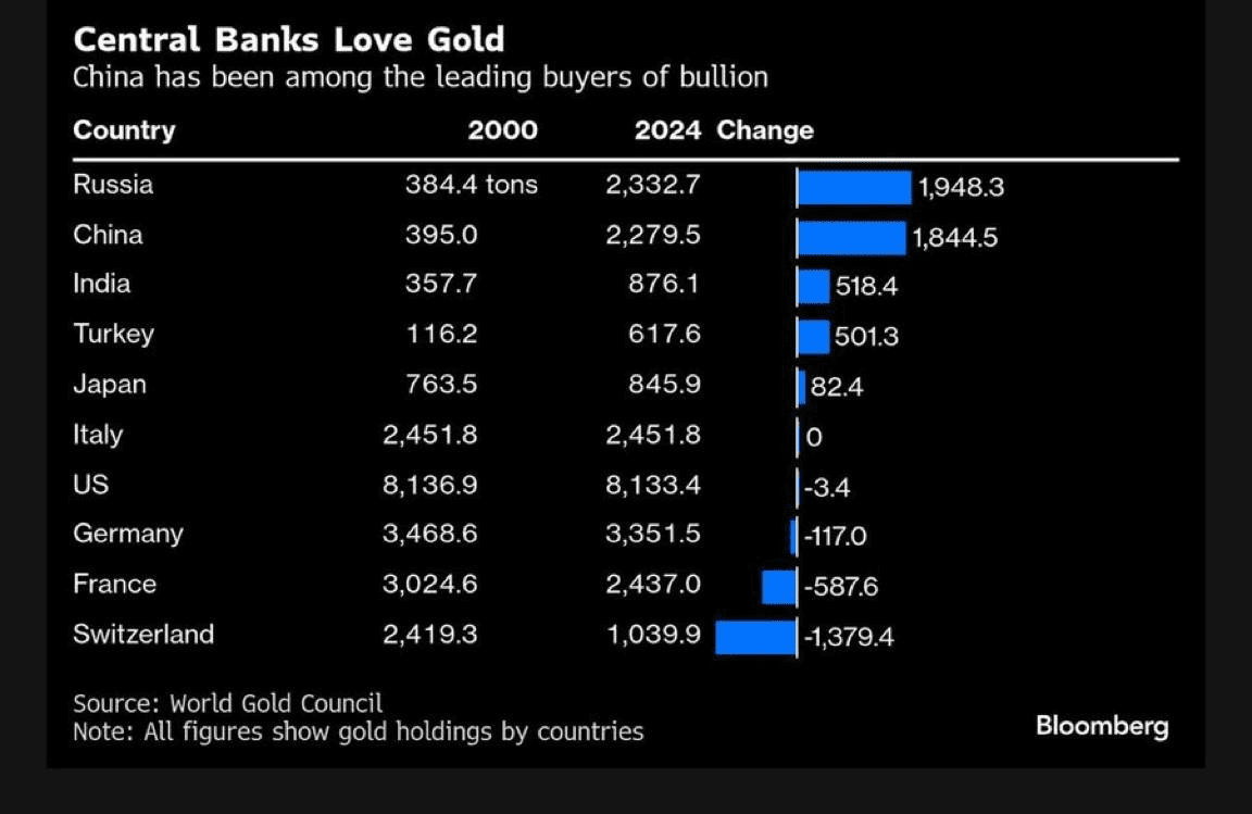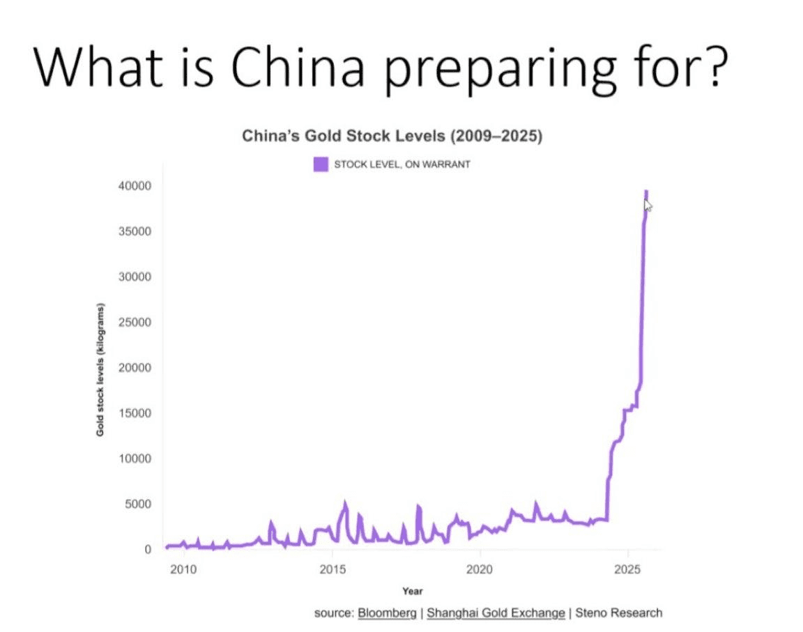 گفتنی است که حتی تقاضای کشورها برای طلا بالا رفته‌ است. برای مثال ذخایر طلای چین در سال ۲۰۲۵ به شدت رشد کرده است.
