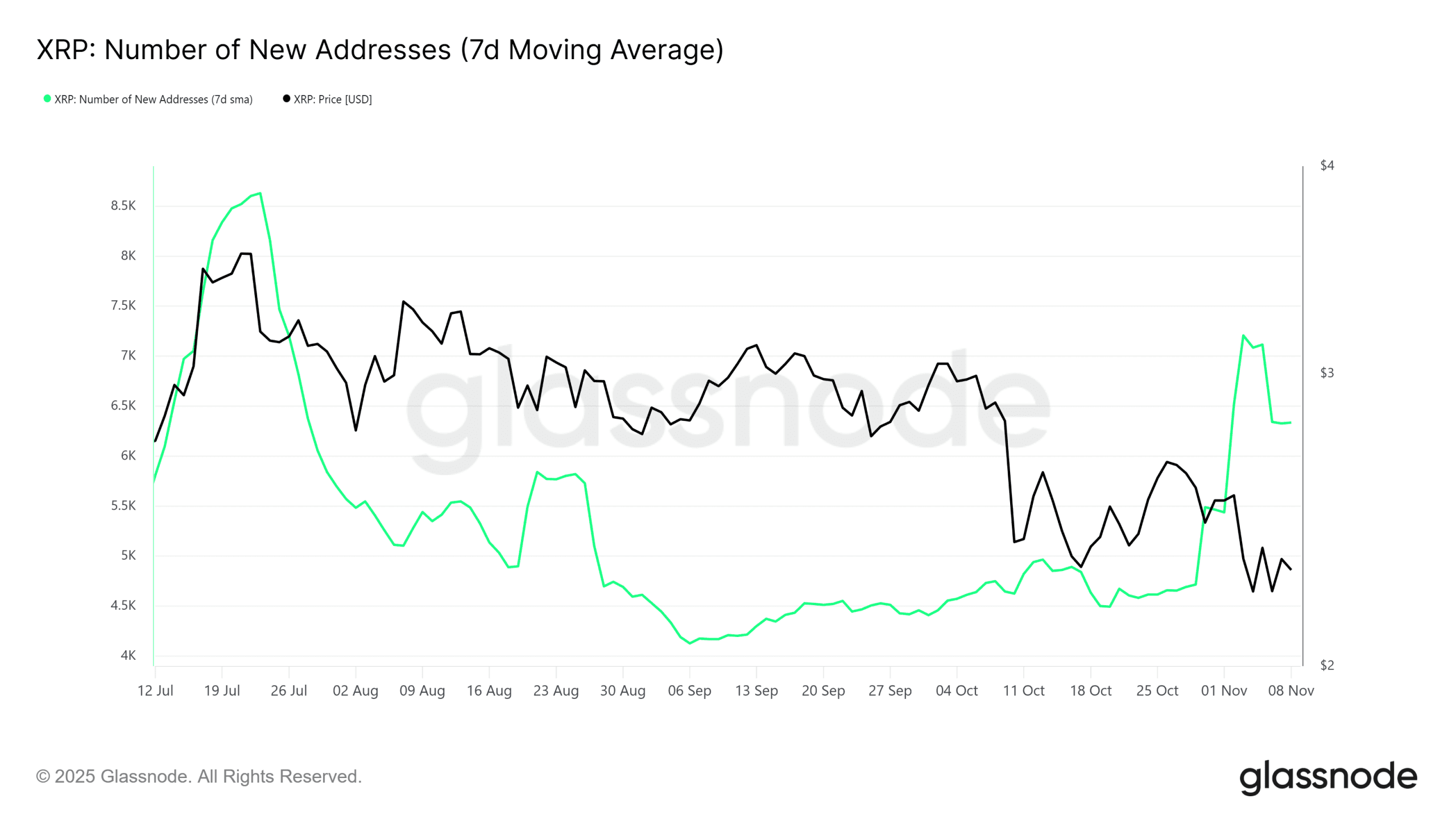 تعداد آدرس‌های جدید ریپل کاهش قابل توجهی داشته که نشان‌دهنده کاهش علاقه از سوی سرمایه‌گذاران جدید است. اوایل این ماه، ایجاد کیف پول‌های جدید به بالاترین حد خود در چهار ماه گذشته رسید، اما از آن زمان به شدت به حدود ۶,۳۳۶ کاهش یافته است. این کاهش رشد نشان می‌دهد که خریداران جدید انگیزه کمی برای سرمایه‌گذاری در XRP در سطوح فعلی می‌بینند.