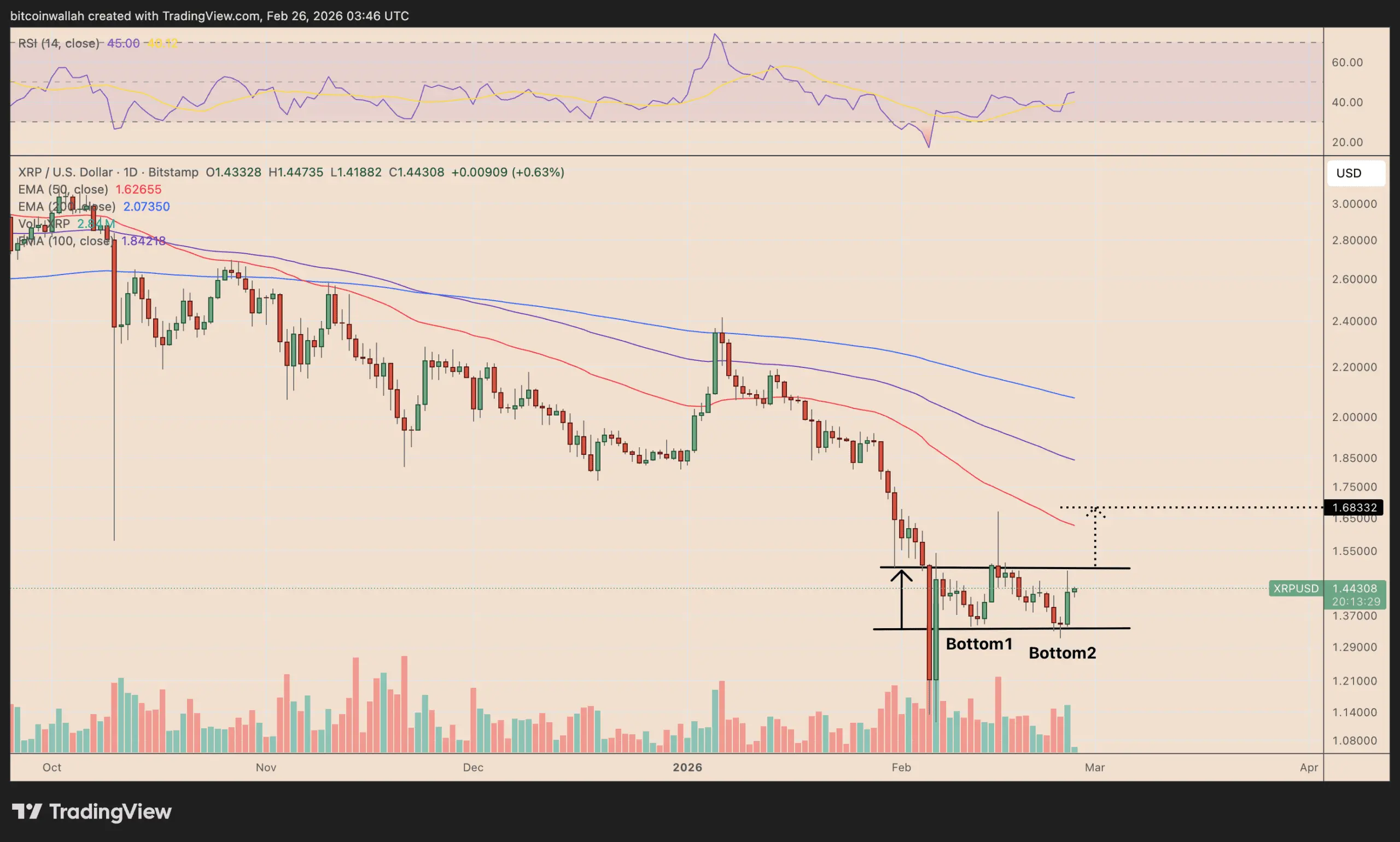 در جهت صعودی، پس گرفتن سطح ۱.۴۰ دلار ساختار نزولی را تضعیف میکند. عبور از ۱.۶۷ دلار ساختار سر و شانه را به طور کامل بیاعتبار میکند. تا زمانی که هیچ یک از این سطوح به طور قاطع شکسته نشوند، XRP ممکن است در یک محدوده مستعد تله حرکت کند.