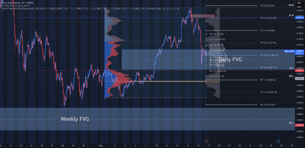 هفته طلا داخل FVG روزانه شروع شد — آیا به FVG هفتگی می‌افتیم؟