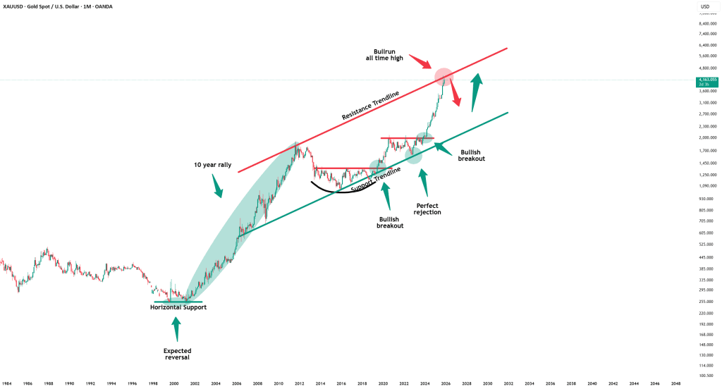 > از اواخر سال ۲۰۱۵، طلا یه چرخه صعودی بزرگ دیگه رو شروع کرد. از وقتی از کف گرد خودش خارج شد، طلا هی بالاتر و بالاتر رفته. ولی الان، طلا داره یه مقاومت مهم رو دوباره تست میکنه و آروم آروم داره یه برگشت رو شکل میده.