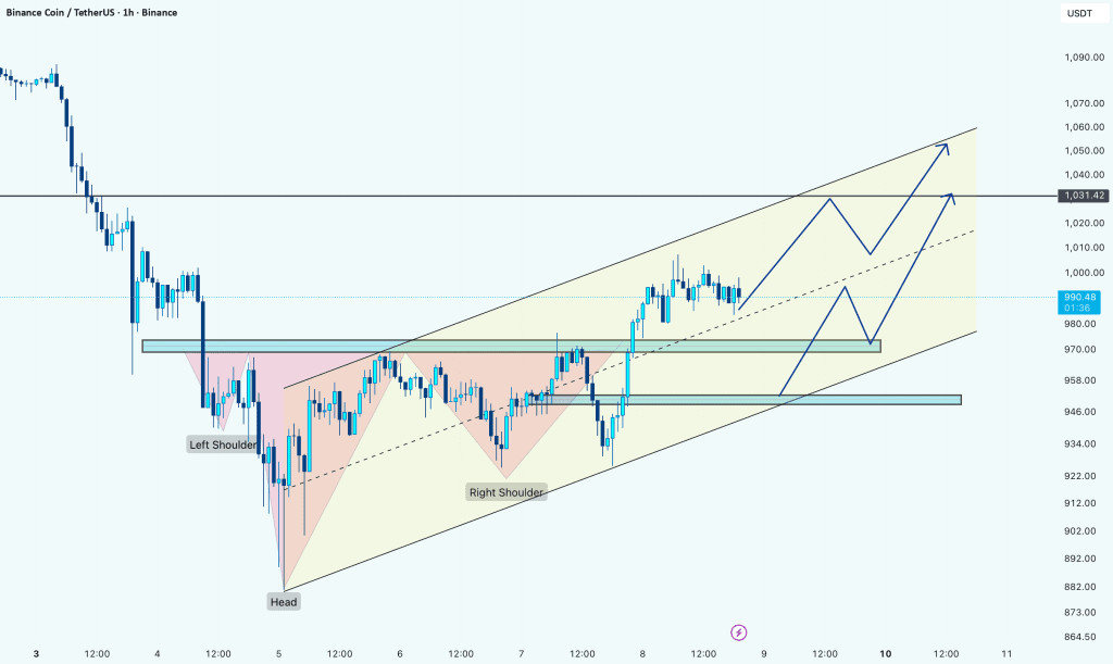 BNB: سر و شانه معکوس و ساختار کانال صعودی